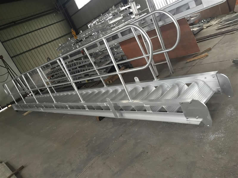 This surface is designed directly as anti-slip arc step to position side stringers and support loading, the lower side of which is equipped with a guard board, with the maximum inclination degree of 55°, defined as type B gangway.